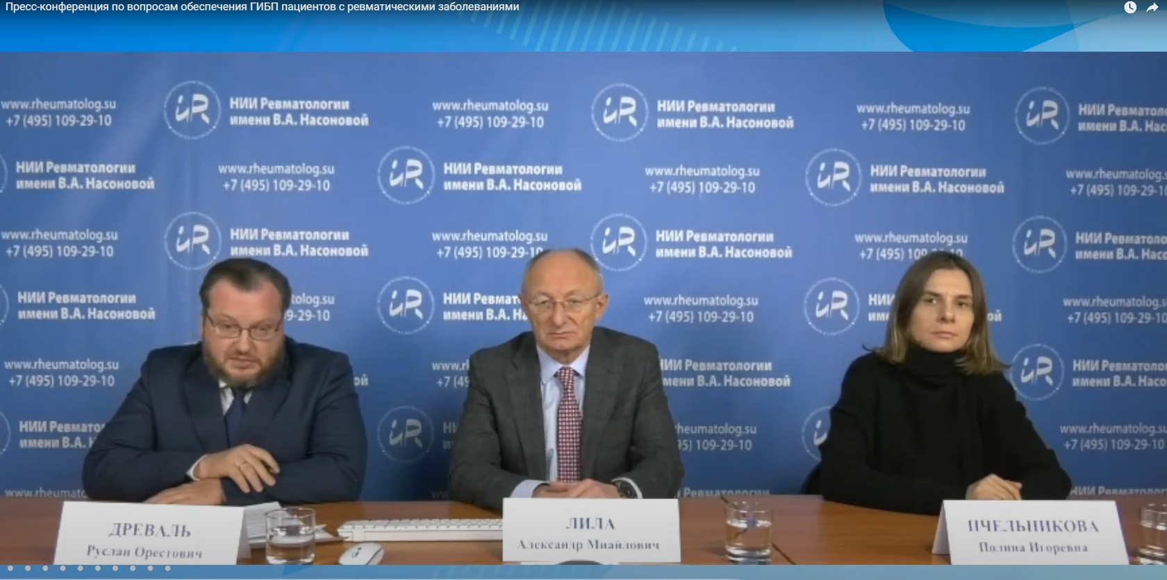 Участниками пресс-конференции стали директор Научно-исследовательского института ревматологии имени В. А. Насоновой, член-корреспондент РАН, главный ревматолог страны Александр Лила, президент Ассоциации пациентов «Надежда» Полина Пчельникова и член Экспертного совета профильной комиссии Министерства здравоохранения России по ревматологии Руслан Древаль.